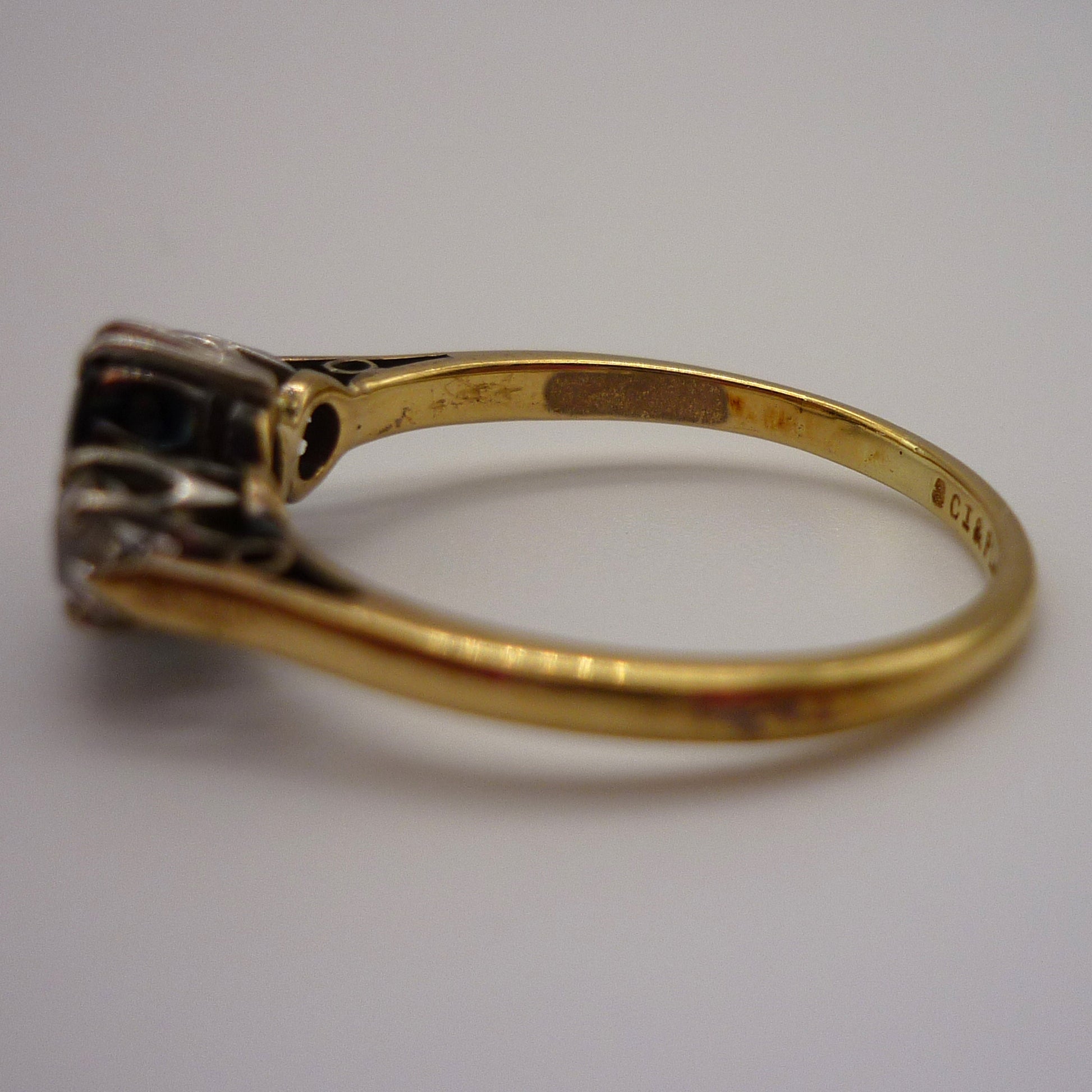 Early 20th century. Mis-stamped 8ct but tests for 18k gold. Stamped for Platinum.
