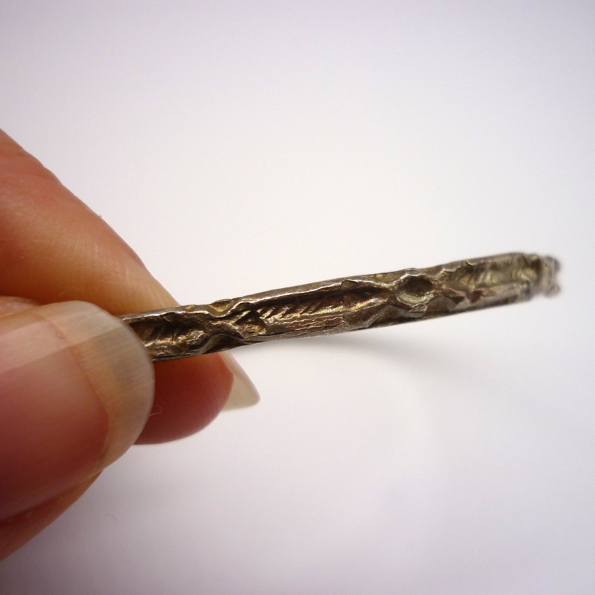 Approx. 3mm wide, interior diameter approx. 63mm. In very good condition; this antique bangle has dulled over the years from time and a build up of patina giving it a wonderful aged look.