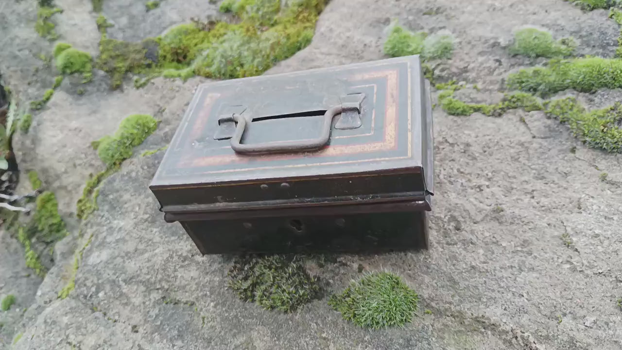 Antique Victorian Black Metal Cash Box: Toleware Moneybox