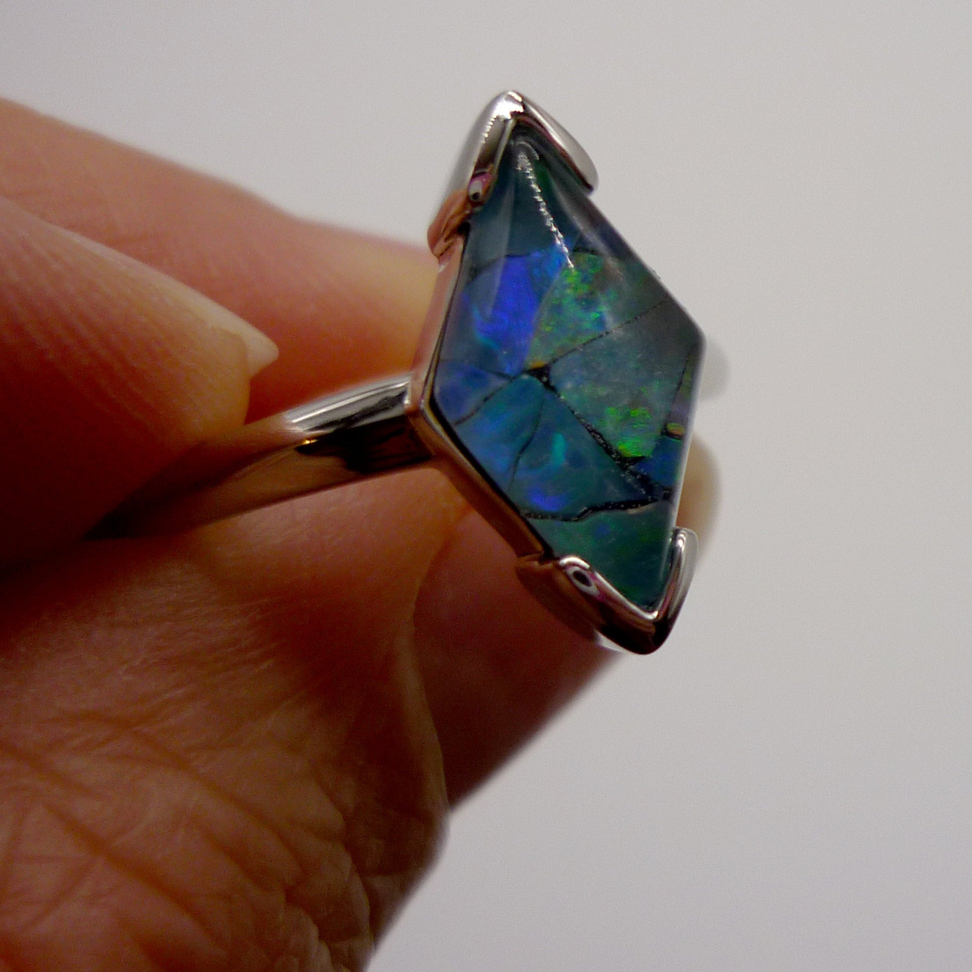 Australian Mosaic Opal & Silver Ring Size 6.75