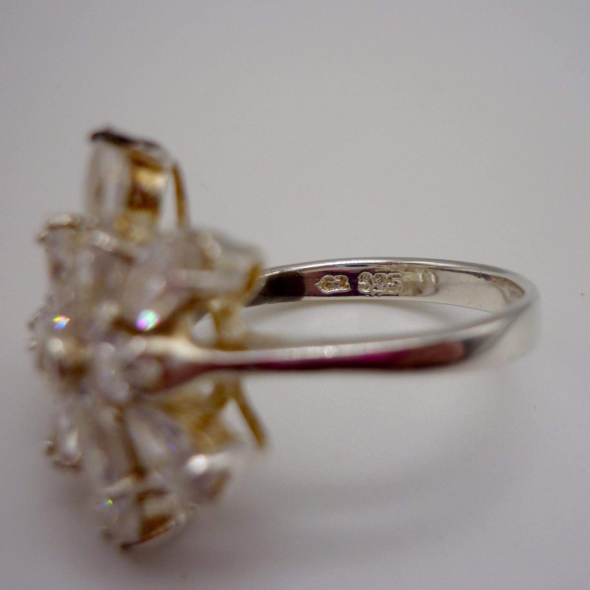 In very good condition with light surface wear. Stamped 925 for silver & CZ. Face of ring approx. 2cm across.