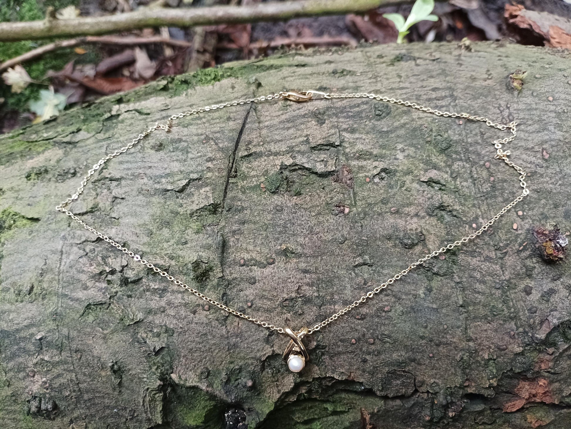 Gold Plated Single Pearl Necklace: Dainty XO Style Chain