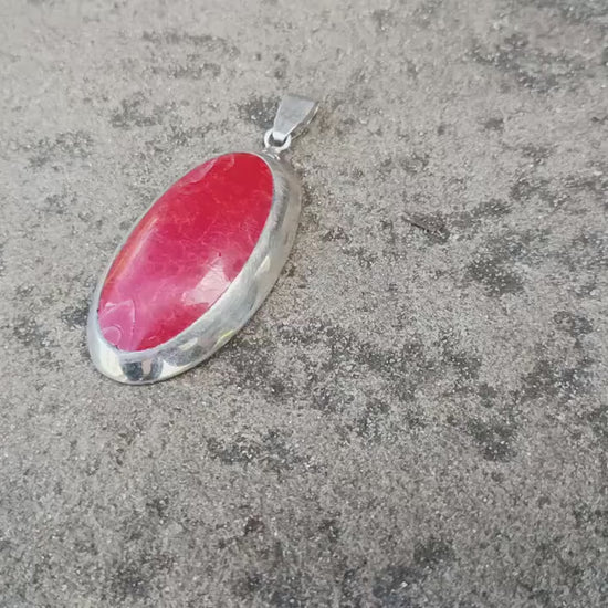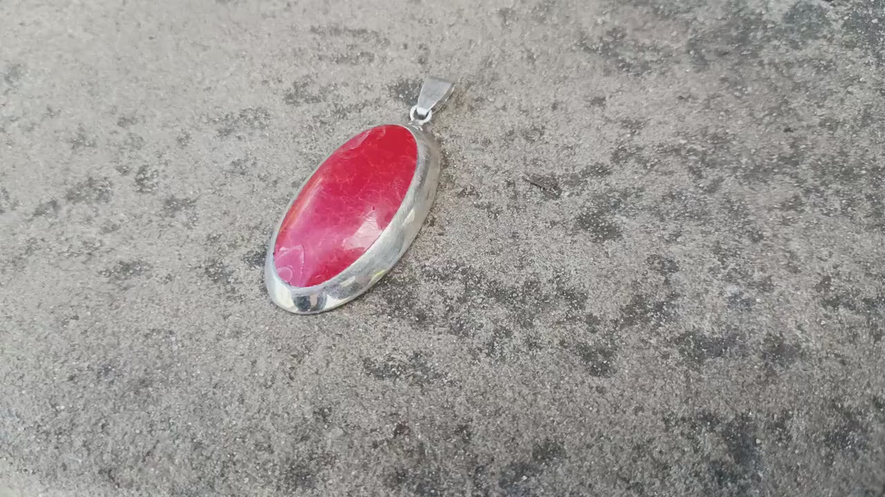 Large Sterling Silver Red Gemstone Cabochon Pendant