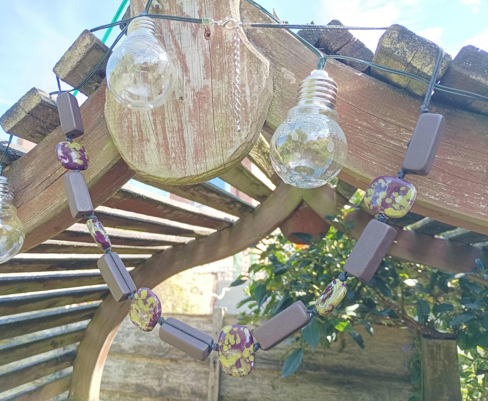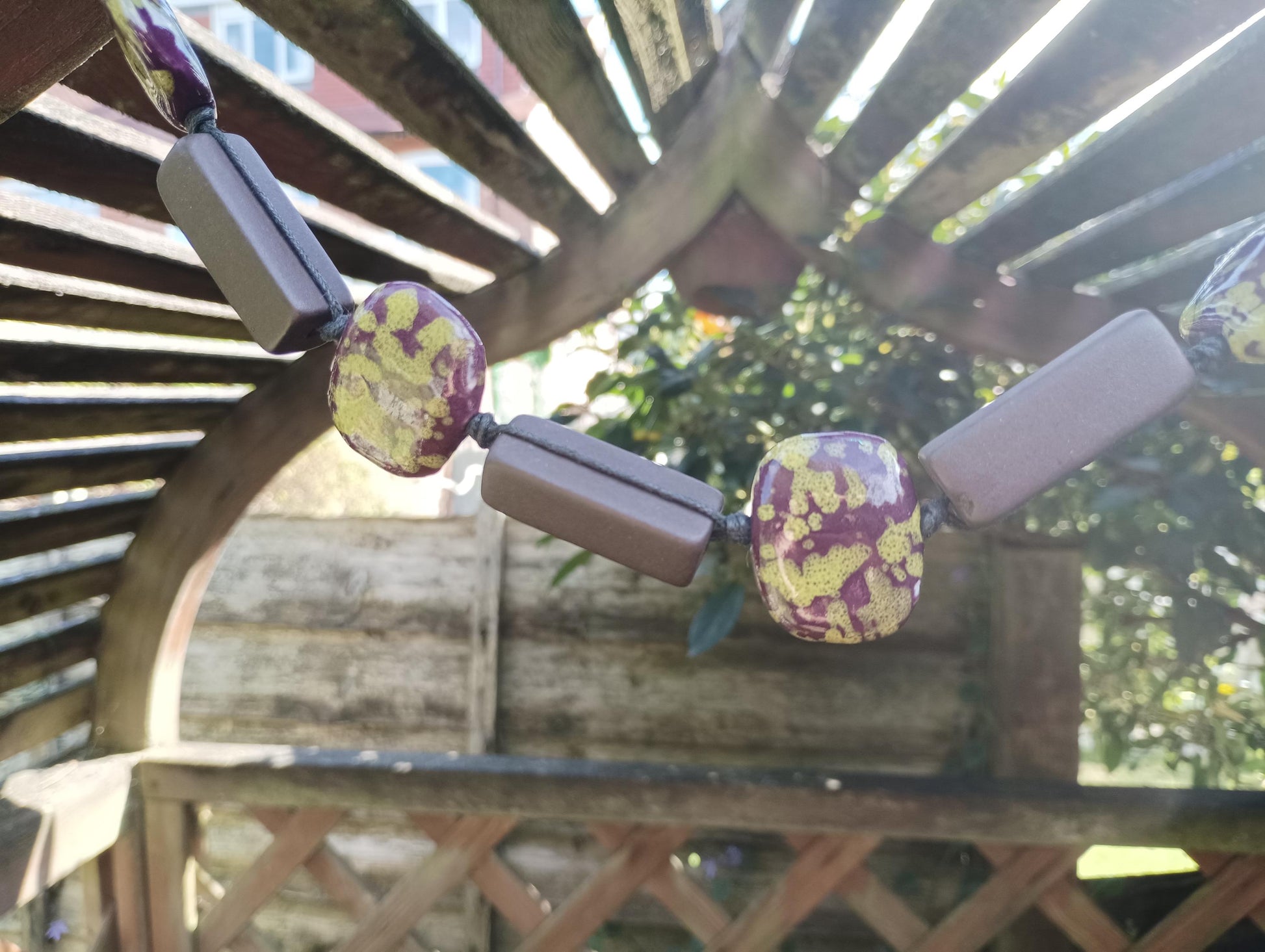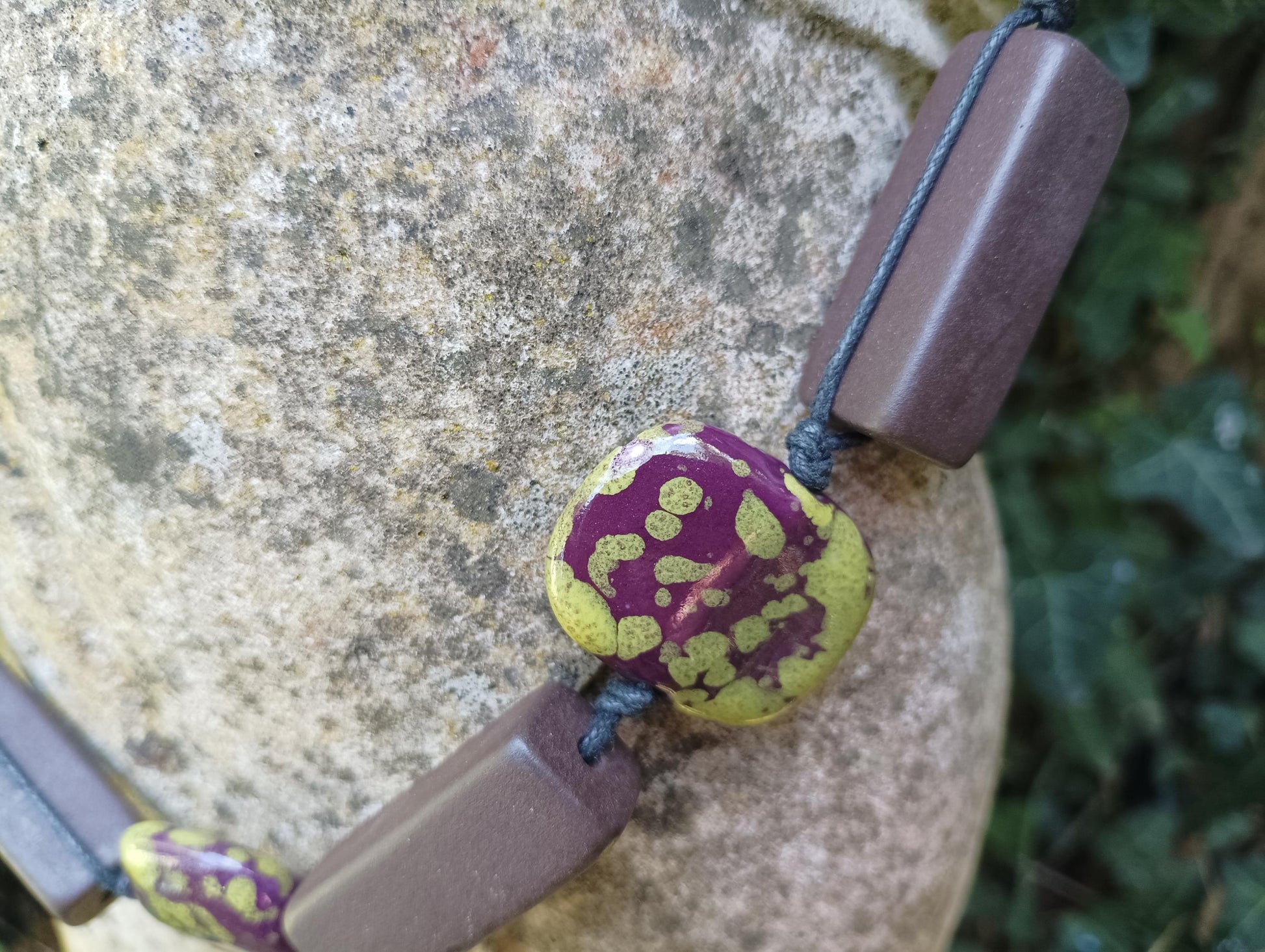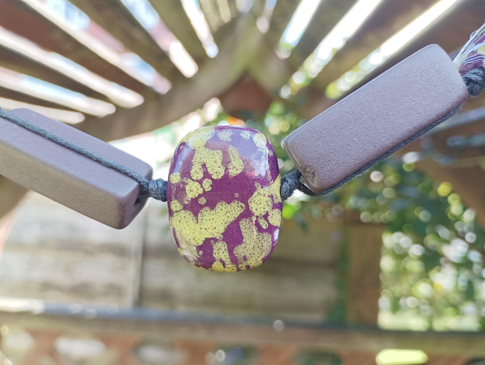 Retro Ceramic Beaded Necklace: Chunky Algae Chocolate Pottery