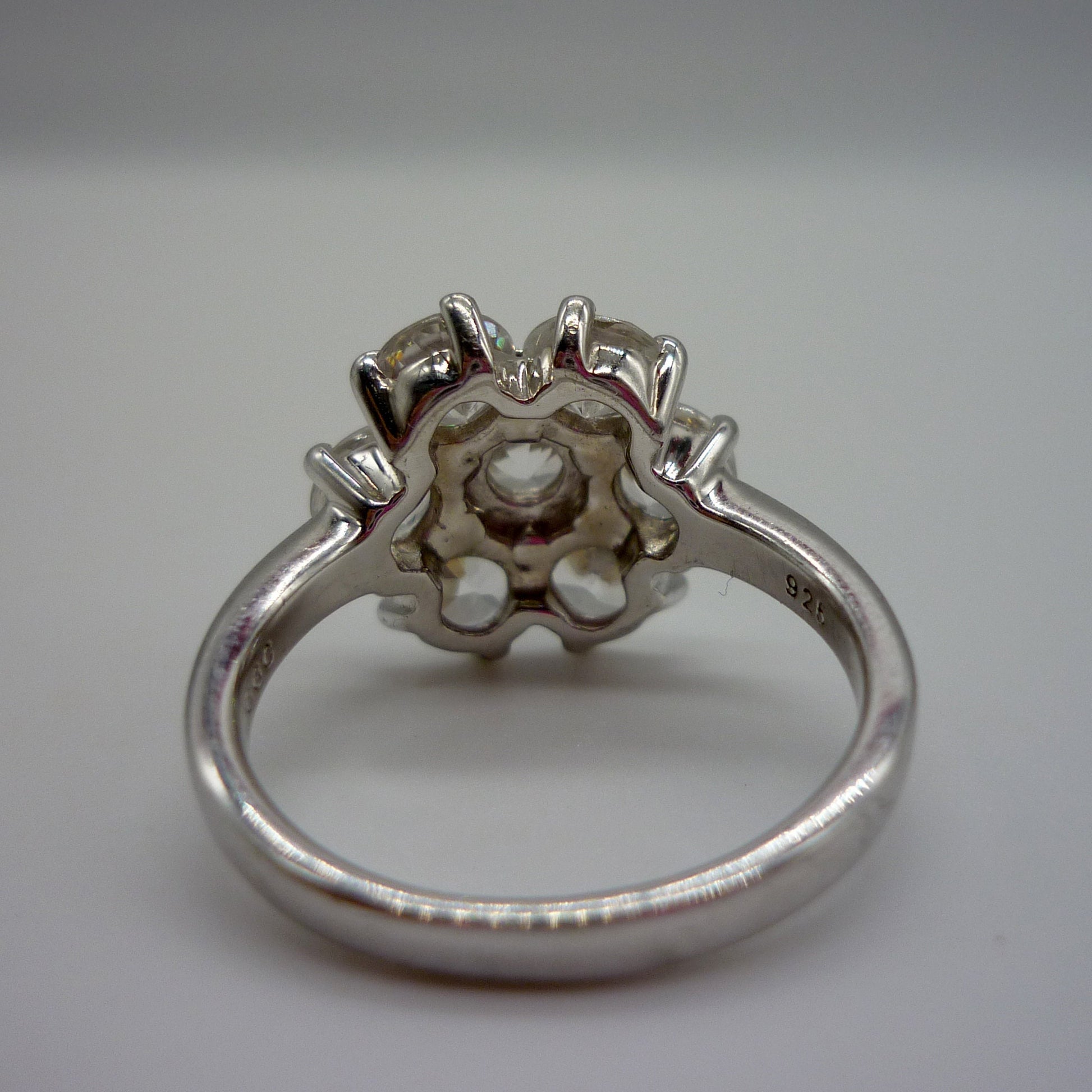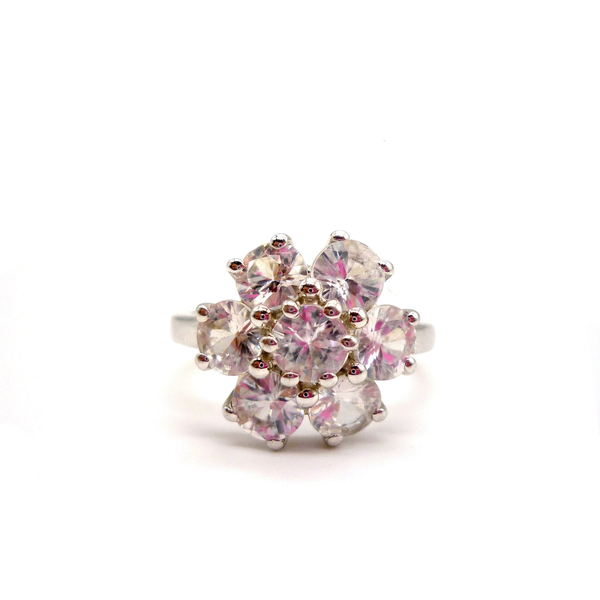 Eye-catching sparkling cocktail ring in a flower design, featuring a central CZ surrounded by 6 CZ diamond petals.