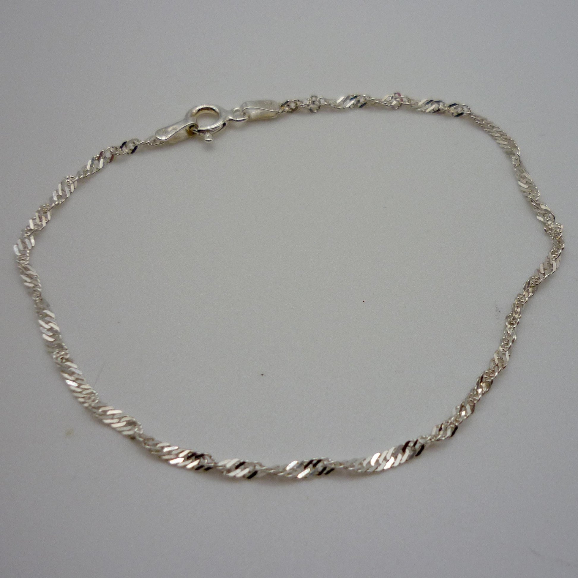 Sterling Silver Singapore Chain Bracelet, Twisted Curb Chain