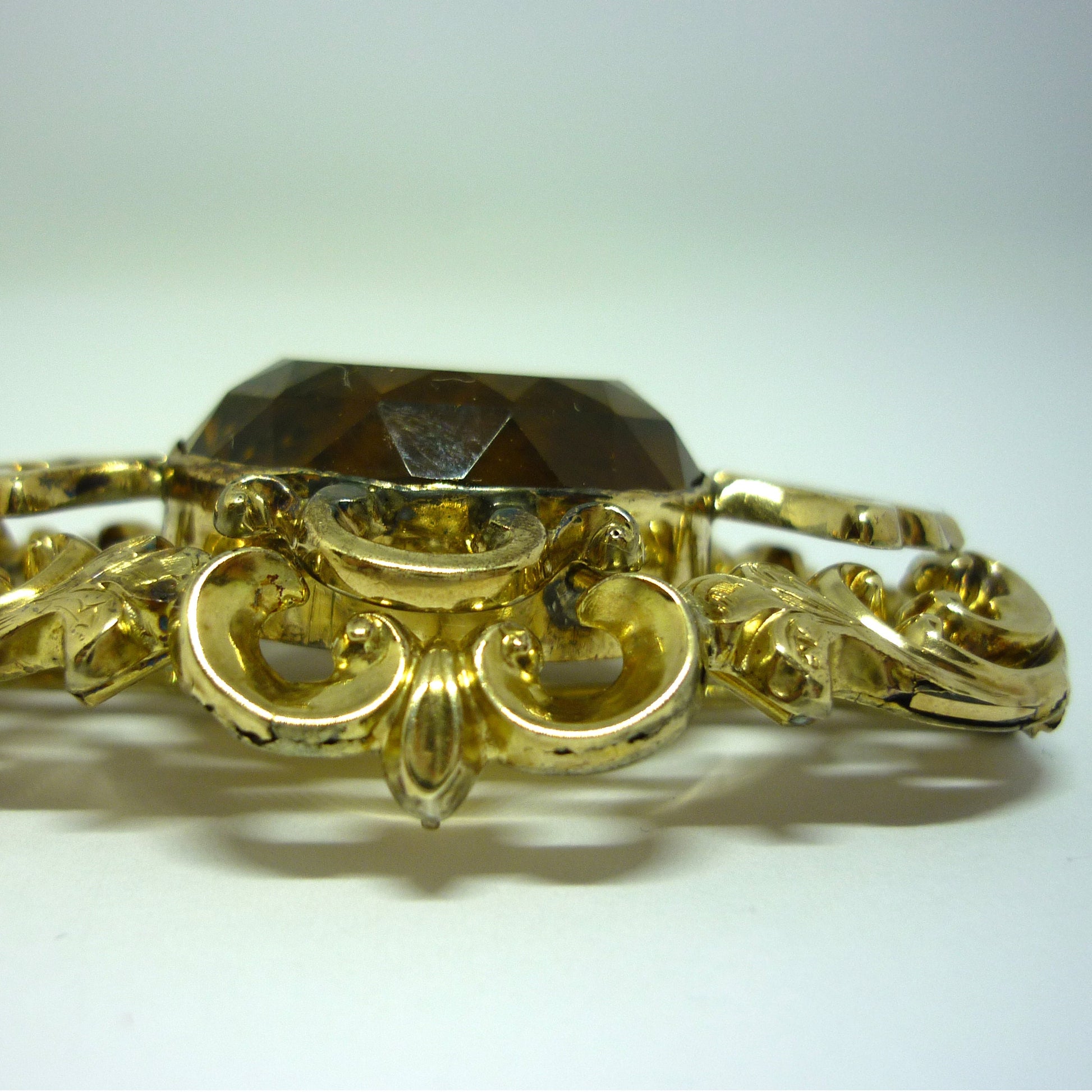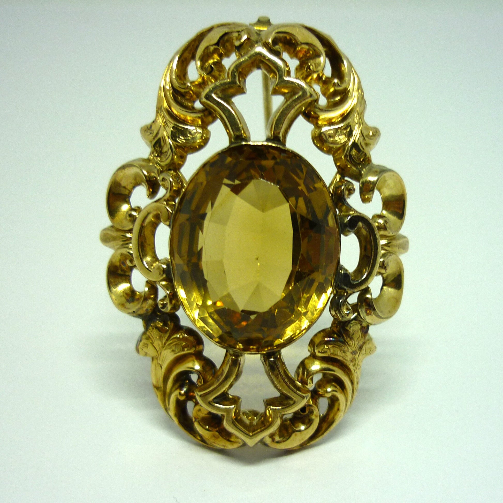 Victorian Citrine Brooch, 1800's Antique Gold Jewellery, Large Gemstone Pendant