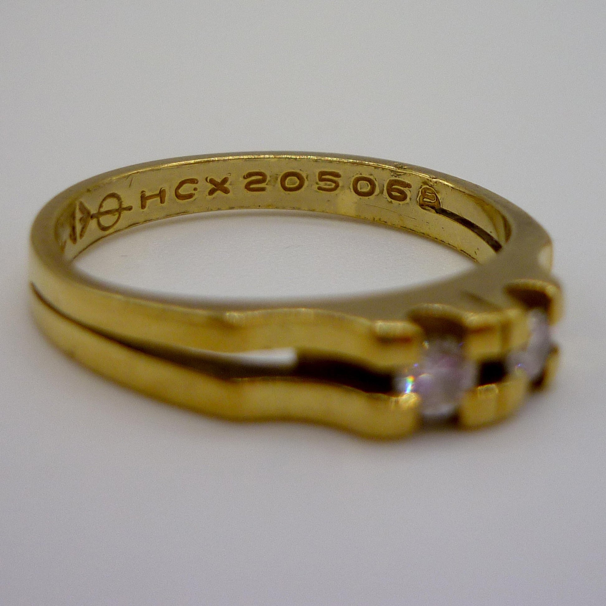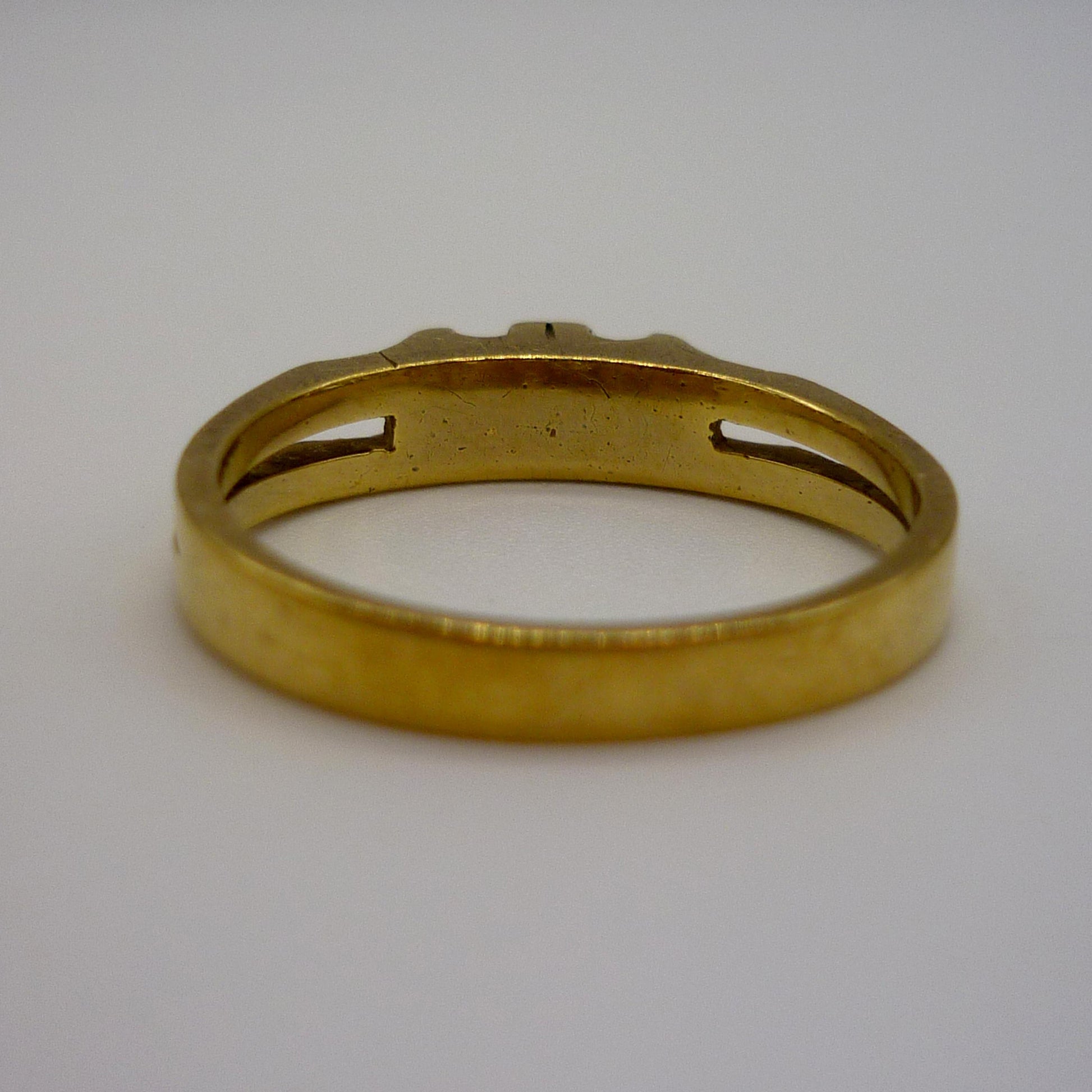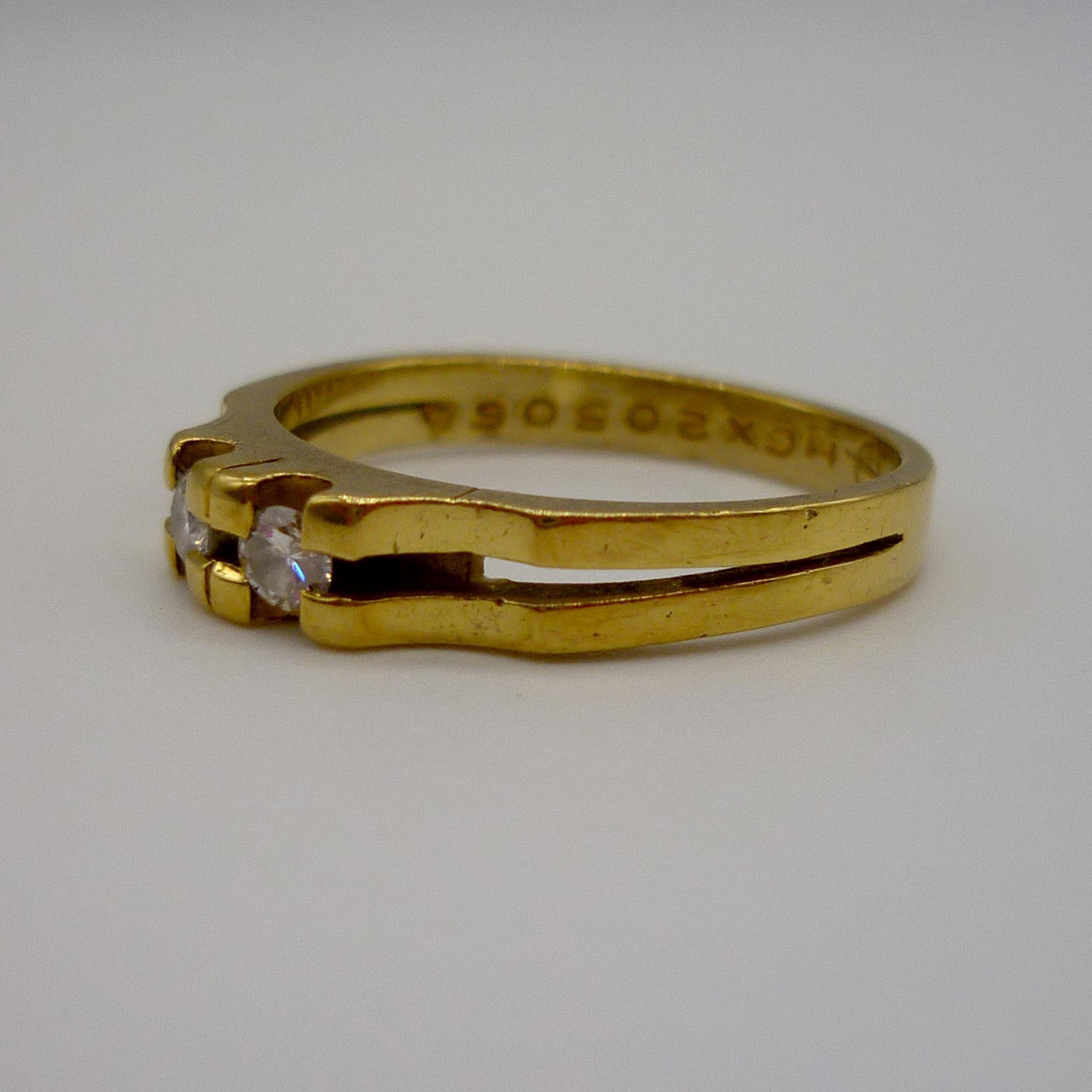 A vintage 18k yellow gold ring, with split shank, set with 2 diamonds.