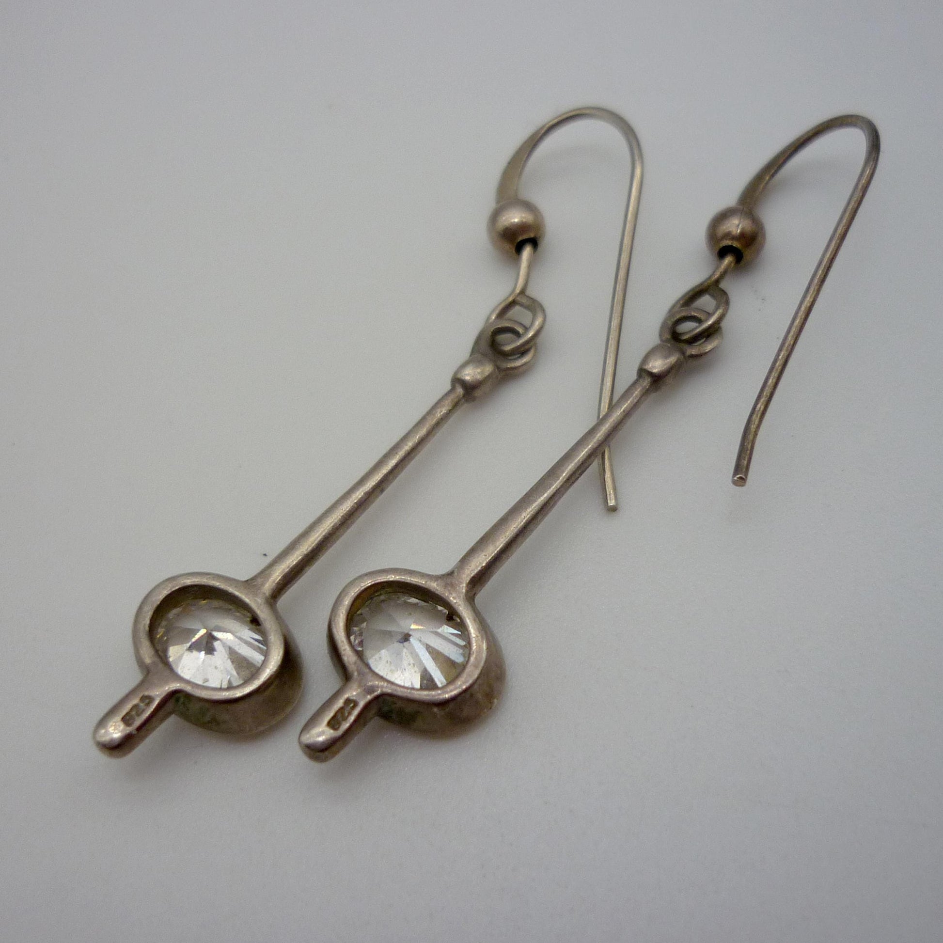 A pair of vintage dangle earrings, with silver bar and bevel set clear quartz.