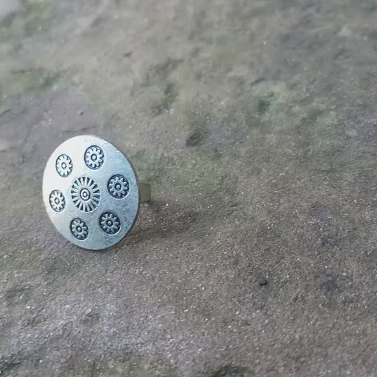 Vintage Costume Disc Ring with Abstract Design, Onesize Fits All