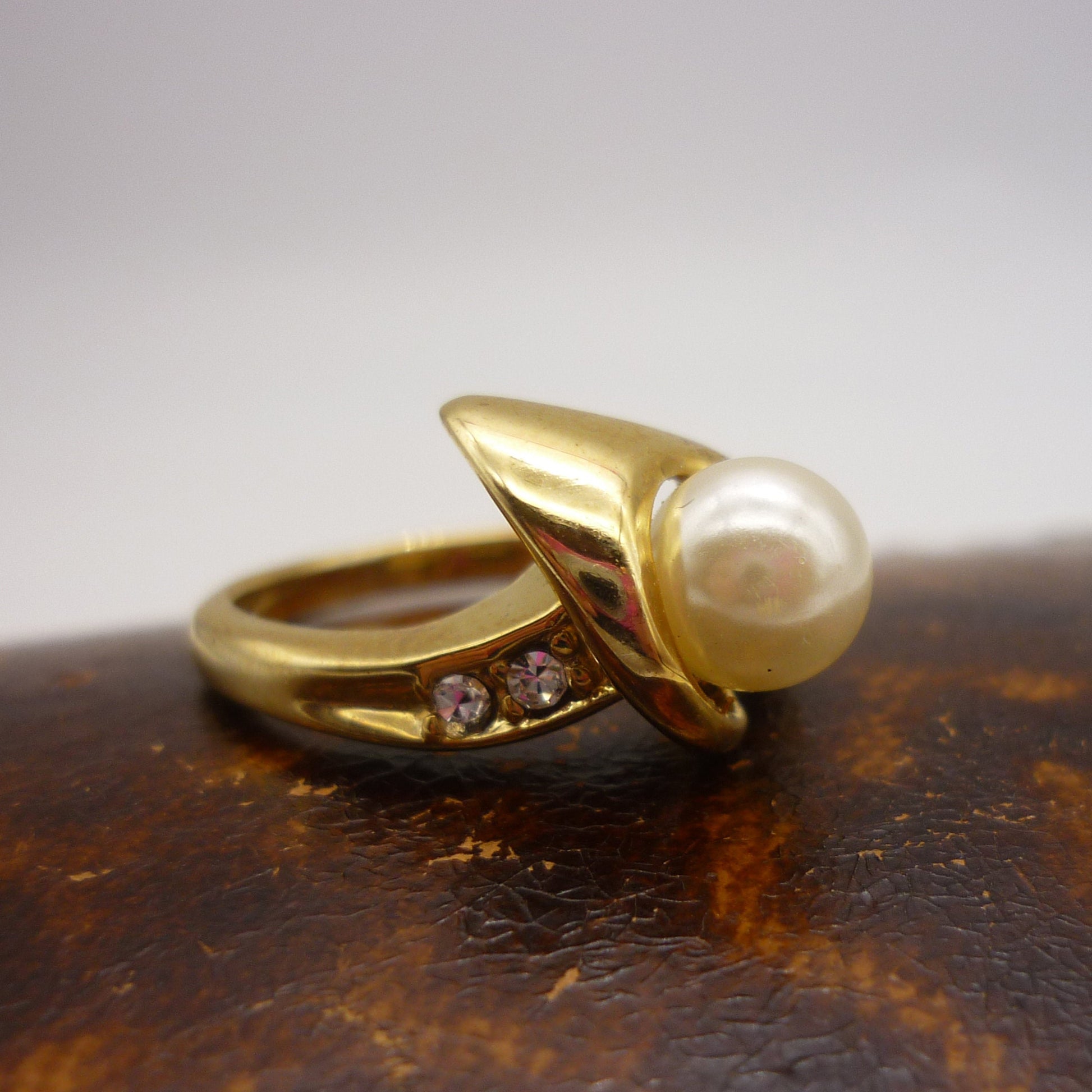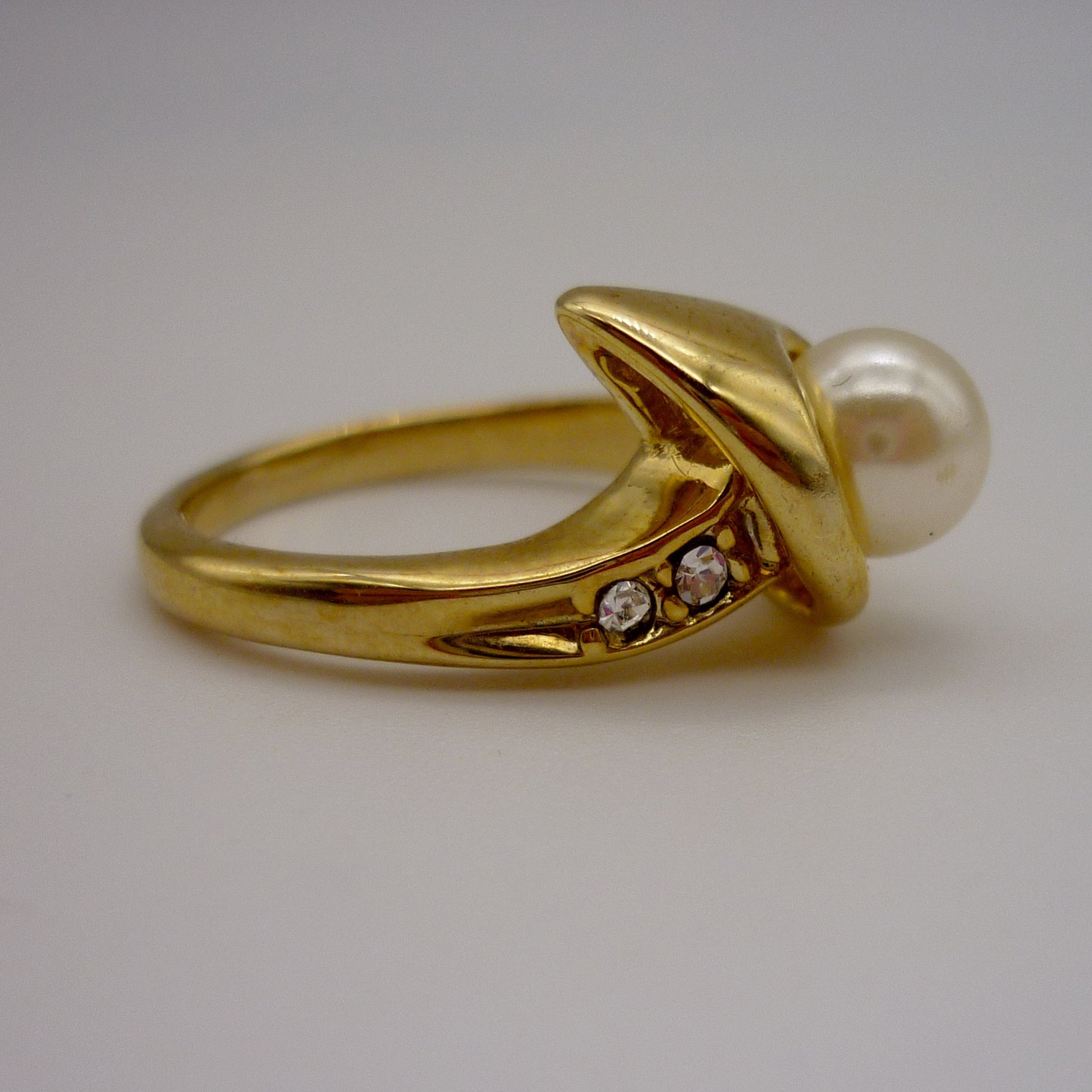 Vintage Costume Gold & Pearl Ring Size 6.75