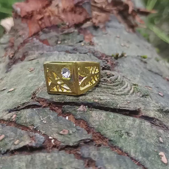 Vintage gold plated costume signet ring set with clear faux stone.