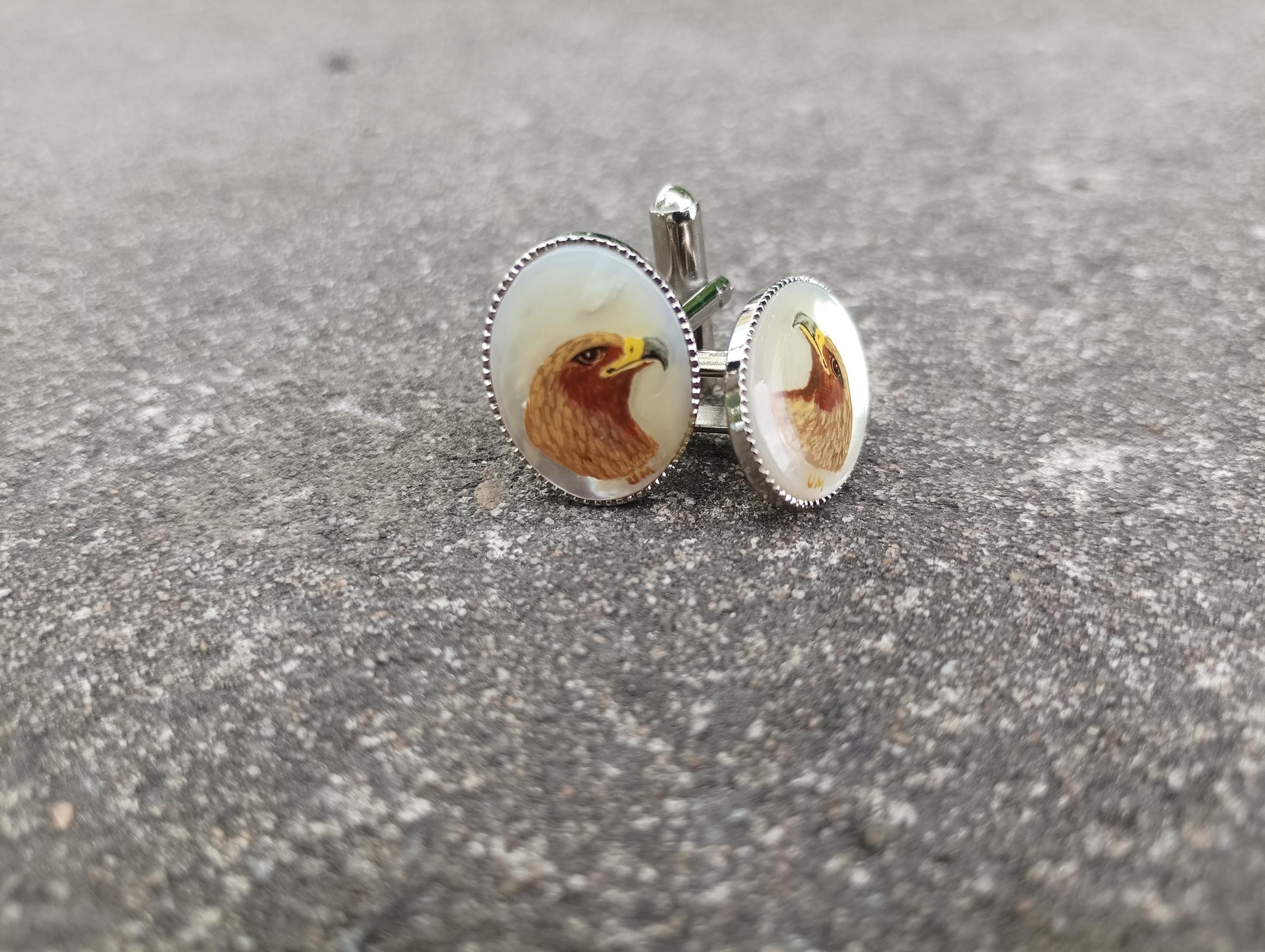 Vintage Hand Painted Eagle Cufflinks: Mother of Pearl Retro Accessory