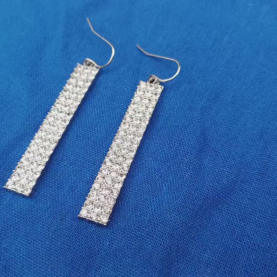 A pair of beautifully sparkly vintage silver tone rhinestone encrusted dangle earrings.