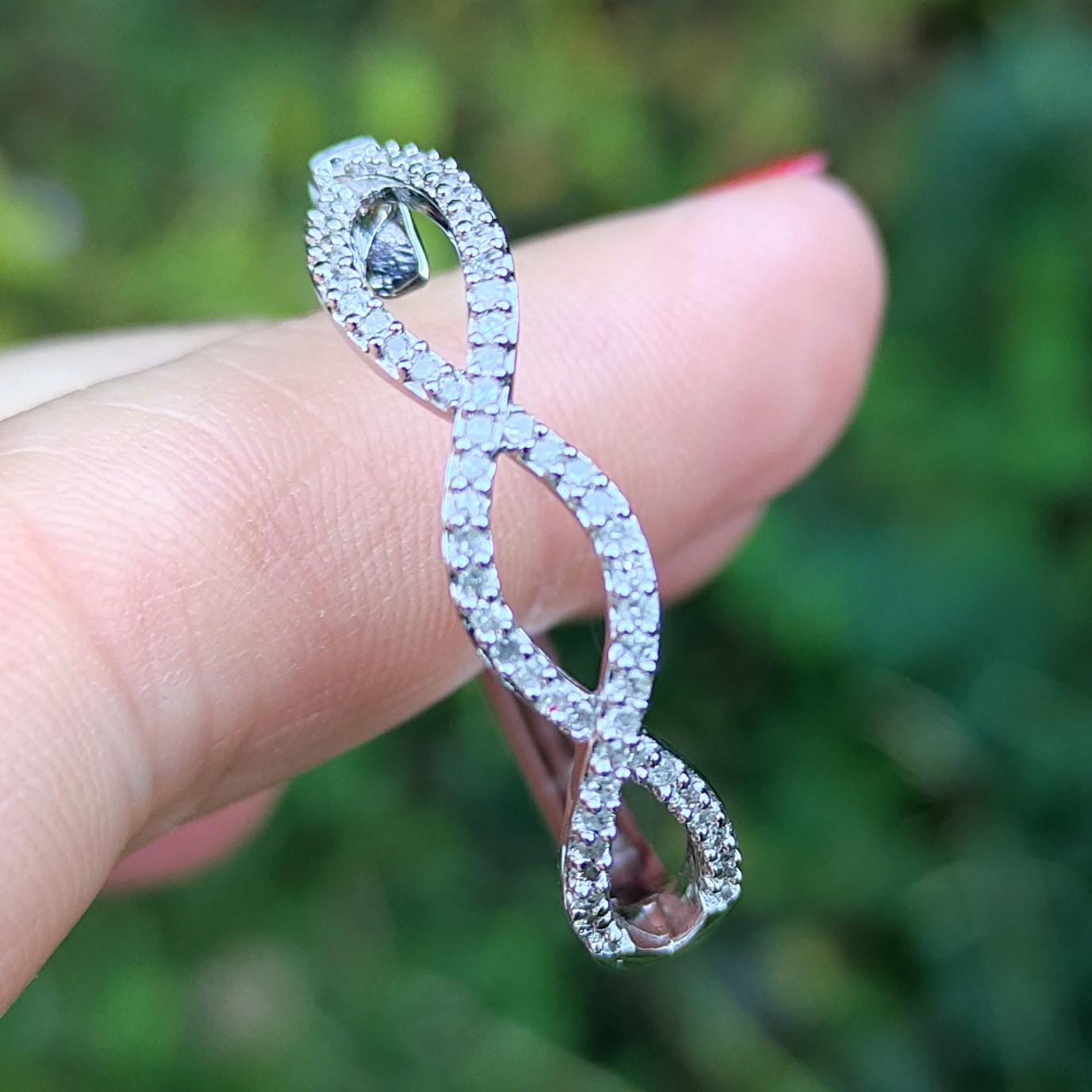 Vintage silver infinity hoop earrings set with Cubic Zirconia .